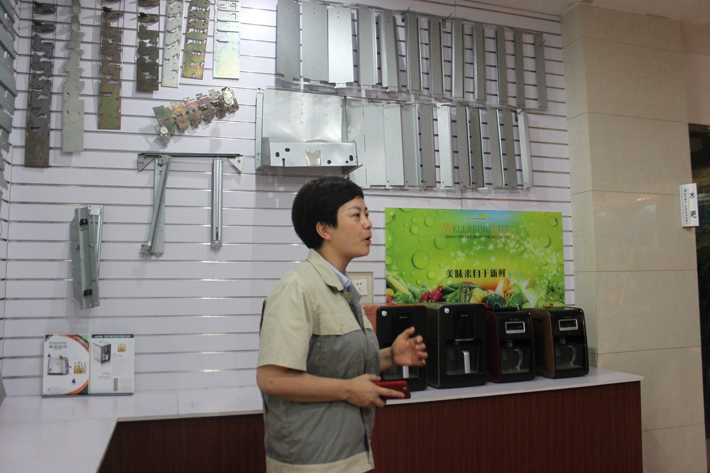 不知不覺參觀隊伍已經來到了第四站:模具事業部。由生產制造經理王釗帶隊,首先介紹的是強大隊伍設計中心,所有的產品構思與設計理念,都是出自這里。還分別介紹了成型研磨、水磨、慢走絲、線切割等工序。