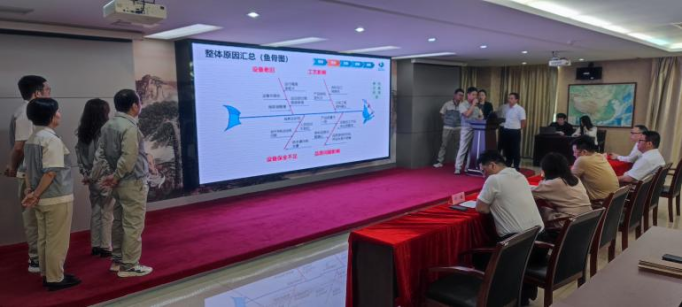 作為公司精益戰略的核心載體,合肥高科以“讓精益流行起來”為行動綱領,聚焦智能化裝備升級與生產流程再造,從設計端到生產端實現全鏈路協同優化。通過標準化工藝設計及數字化管理工具的應用,改善成率逐步提升,設備綜合效率也大幅度高于以往水平。此外,項目團隊通過魚骨圖等各種分析法,對設備運行狀態、工藝形式及安全隱患進行全面診斷,形成系統性改進方案。例如,針對設備安全不足、設備使用率低下,故障率持高不下、人員配備不飽和等問題,團隊增設人員監督、設備改造等實時監控、優化維護流程,為后續產能釋放奠定堅實基礎。
